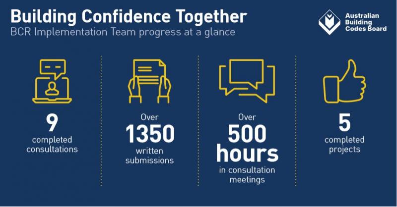 Since mid-2019, the ABCB’s Building Confidence Report (BCR) Implementation Team has been developing responses to the BCR recommendations for implementation by governments and you have been with us the whole way. So what have we done together over this time?