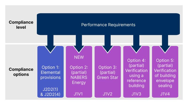 Other compliance options available are Performance Solutions. Refer to the ABCB website or the NCC for more information.